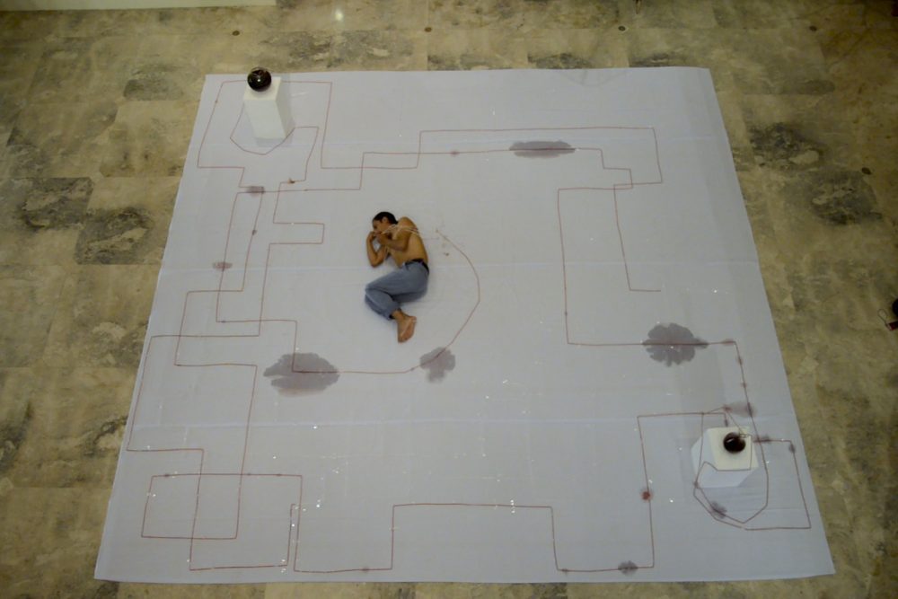 Through his performances, sculptures and video works, Antonio Paucar creates an artistic language that draws upon his origins in Andean culture through rituals and interventions. Dialogue with indigenous ancestral knowledge is often set in critical tension with Western culture to address issues such as contemporary conflict, the assassination of indigenous leaders and climate change. The core of Paucar’s practice lies in his poetic and poignant performances in which he creates a dense body of readings. Concentrated actions and movements in natural and urban public spaces conjure intense imaginary worlds, loaded with symbolic readings.